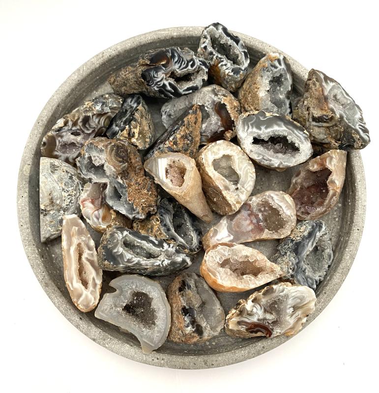 Agat Geod är känd som en lyckosten. Som en sten av harmoni är en av de saker agat gör att balansera yin/yang-energi. Agat ökar energin. Känslomässigt ger agat mod, känslomässig styrka, självförtroende och skingra rädslor. Det kan också minska känslor av avundsjuka genom att jorda känslorna.