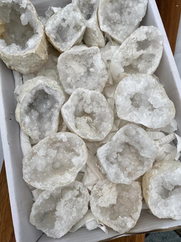 Kalcit Geoder i halvor fyllda med gnistrande kristaller, perfekta att ladda dina stenar/kristaller i.